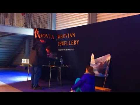 I'd spoken about the event to Annabel Graham, the jeweller who has created our gorgeous badges for us (see right-hand side-bar, here on our blog). Annabel had offered a bit of wall space from her Whovian Jewellery stand for our banner, and I had two days off between LOTR-touring to help her out a bit, so I decided to take her up on her offer.